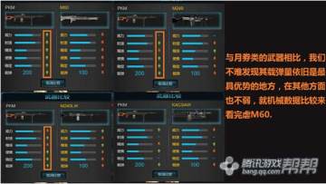 首先映入大家眼帘的是其200发的超大容量载弹,在GP机枪中是前无古人的,其射速也是较为突出的,但在威力方面可能要稍稍差一些,在GP机枪中处于中等低位,他不仅仅是在载弹,射速方面较为突出,在便携上也是非常不错的,接下来我们来看看PKM与月劵类机枪的机械数据比较。