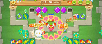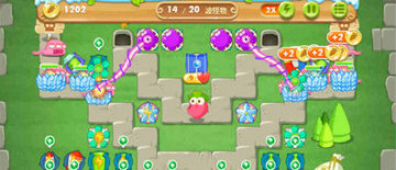 2、打出下方的瓶子炮后,可以优先升级满瓶子炮塔,然后打掉大钱袋,即可获得火箭炮塔。再将其升满,并在路口处放上风扇加以减速。