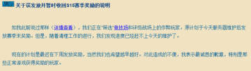 魔兽世界最新蓝贴:S15奖励因作弊问题延迟发放 来源: 飞翔小编 2014/10/29 10:40:42 浏览量:247 由于很多玩家作弊,原计划今日发放S15赛季奖励发放要延期了!之前错误发放的奖励也会回收,并在完成作弊玩家清理后重新发放。看来暴雪这次是下定了决心要处理作弊问题。