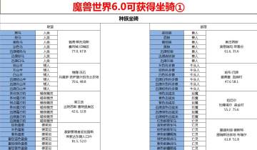 魔兽世界中有很多坐骑控玩家,这里就给大家分享一个6.0所有坐骑的列表,各位玩家能很方便的查询所有坐骑。