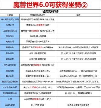 以上就是魔兽世界6.0坐骑掉落大全表,希望对各位玩家有帮助,想要了解更多游戏资讯,请关注飞翔游戏网。