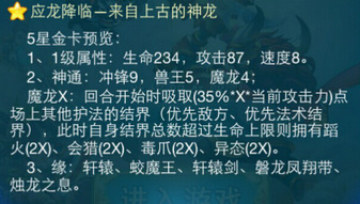在迷你西游游戏中,即将推出兽族新金卡应龙,应龙怎么样,该怎么培养,下面就给大家详细介绍应龙的相关资料和使用技巧。