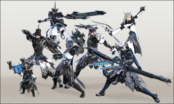 110制作套,4星级配方你值得拥有,FF11的老玩家会发现中间那套重甲是不是很眼熟?没错!5代PLD的神装造型!嗷嗷嗷!双剑士那套衣服拉拉穿起来真萌!