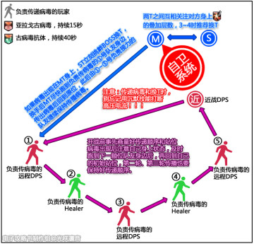 当BOSS的HP到达70%、50%、30%的时候,会使用分解吸收,每当看到BOSS使用分解吸收,T都记得开下减伤BUFF。第一次分解吸收后不久,病毒就会出现。