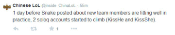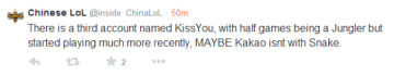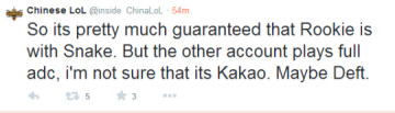 十分肯定的是Rookie将加入Snake,但是另一个账号一直在打adc,不确定是否为KaKAO,很有可能是deft(三星Blue ADC)。