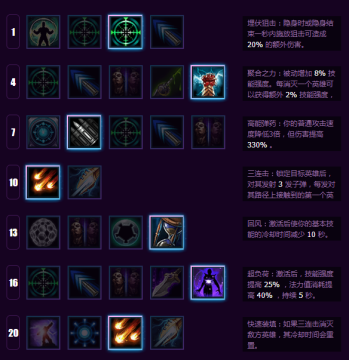 20级天赋选择快速装填,后期收割伤害爆发的最强保证,游走团战,最后收割5个人都不是问题。