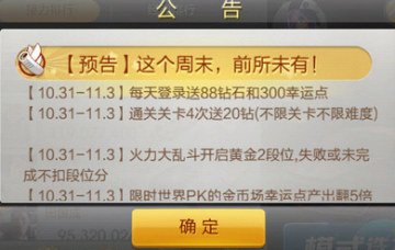 天天飞车10.31-11.3更新活动一览 世界PK金币区幸运点翻五倍 来源: 飞翔小编 2014/10/30 17:09:17 浏览量:247 在天天飞车游戏中,这个周末,10月31日-11月3日又更新了不少活动,还愁金币没处花吗?世界PK金币区幸运点翻五倍!有图有真相,下面给大家带来这次的活动公告。