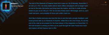 社区经理原文地址魔兽世界6.0蓝帖:德拉诺之王beta测试服即将关闭