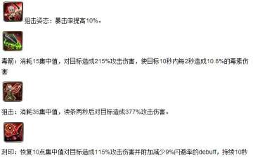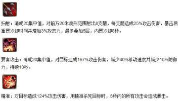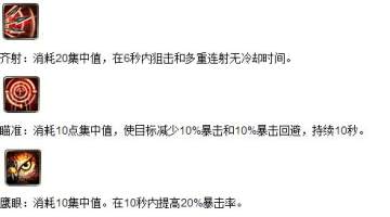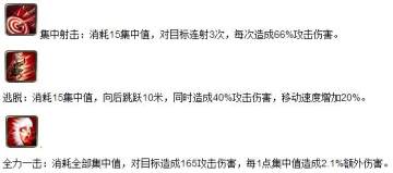 集中射击属于中规中矩的输出技能,低消耗低输出,用来搭配输出循环是很不错的选择。
