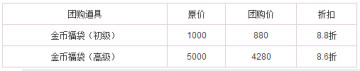温馨提示:本次金币福袋团购,金币福袋(初级)限量100000个,金币福袋(高级)限量30000个,大家欲购从速,手快有,手慢无!