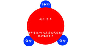 如果Boss身边没有可以攻击的目标,那么他会疯狂的喷吐。最为可怕的是,他会召唤两个分身,这些分身和Boss相隔120度,更可怕的是,如果这些分身近战范围没有可以攻击的目标,那么也会疯狂的喷吐。最好的解决方法是,让队伍中除了坦克最硬的两人去承担分身的近战攻击,并迅速击杀分身。值得庆幸的是,分身的攻击并不高。但请注意,分身也会用身体碾压,场上有3个身体碾压的时候你会觉得画面太美不敢看,所以,快速杀掉分身吧。