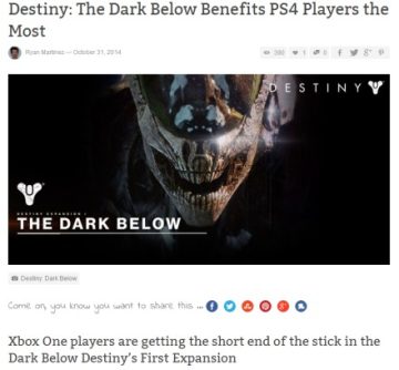 《命运》首个扩展资料片Dark Below追加内容公布 来源: 飞翔小编 2014/11/2 20:39:15 浏览量:416 根据外媒报道,动视科幻射击大作《命运》首个扩展资料片“Dark Below”将为玩家提供大量新内容,其中包括1个新Raid、3个新PVP竞技场、3个新剧情任务、一个新角色“Eris ”、新的武器和套装,以及两个新的“Strikes”,值得一提的是只有PS3/PS4版可以获得2个Strikes,而Xbox平台只拥有1个Strikes。这意味着玩家支付同样的钱,但在Xbox平台却得不到同样的内容。