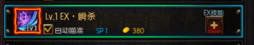 EX1·瞬杀:点1,无敌用于躲避一些技能和破除BOSS的霸体状态。(技能变动:CD减少)