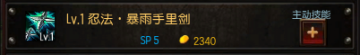 暴雨手里剑:当前版本只推荐加1或不点,虽然这个技能是觉醒后的神技但是当前的国服版本并没有觉醒,所以不推荐把这个技能点的太高。与其花大量SP在这个技能上,不如去加满风藏毒比较好一些。(技能变动:SP消耗减少,SP平均消耗减少。技能总等级增加,平均伤害减少,总伤害小幅度提升。)