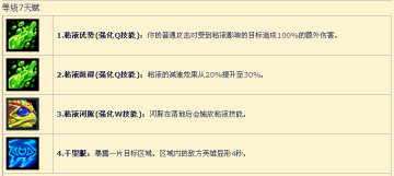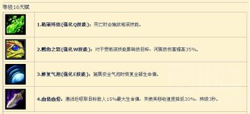 16级天赋升复壮泡泡。终极粘液,无限送死流外加强化Q,让你有种送死不能停的错觉,想想我都虎躯一震,可惜我是一个很有事业心的人,什么都改变不了我的心志,即使前期你强化了Q,我个人建议这层还是点复壮泡泡,我相信你满血以后都还是能吐别人一脸的;鳕鱼之怒,升了这天赋以后,16级的W对军伤害有1130,想想都爆炸,团控多的时候可点;复壮泡泡,这就是爱,说也说不清楚,这就是爱,糊里又糊涂;血债血偿,配合4级下毒单杀,如果你的目标是一个鱼人刺客,与我们搅屎棍道不同不相为谋。
