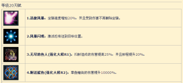 20级天赋升风暴转移。坐骑不下马,虽然是专业英雄独有的天赋,但是个人目前没发现哇啦哇啦升这玩意的必要性;风暴转移,快速切入战场,配合吃我大X夺人贞操千里之外 ;汹涌鱼潮=。=刷屏超好用,提升了输出和减速时间,但是风暴转移对于无位移英雄来说,真的很棒;再来条鲨鱼,我不喜欢和别人分享O,只要吃我大X就够了,这天赋更多是单杀,这个跳抓对方核心很重要,而且很多时候基本上就是甩脸甩不出3下,在你们团队缺乏输出的时候可升。