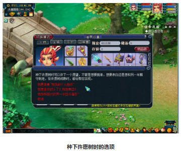 如果玩家拥有夫妻关系,则可以选择第三个选项,当许愿树成熟后,将能和爱侣白头偕老!