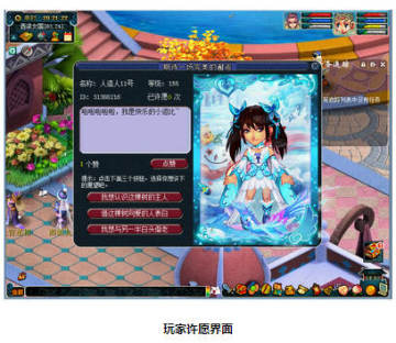 当有玩家种下了许愿树之后,其他玩家就可以在树下许愿了。任意玩家许愿次数达到60次后,都会获得丰厚奖励!许愿玩家可以根据自己的愿望在许愿树下许愿。