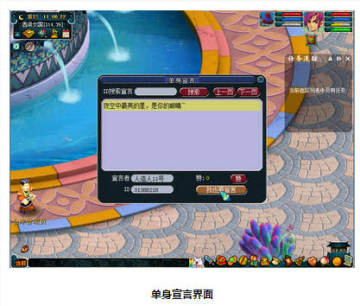 玩家还可以为他人的宣言点赞,每天获得“赞”的数量最多的四名玩家的单身宣言将会在系统广播内发表!