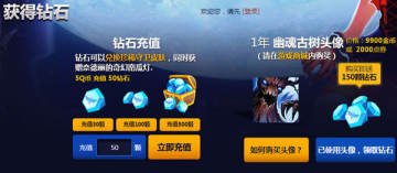1在活动页面上使用Q币充值钻石,5Q币充值50钻石。在游戏客户端购买并使用期限头像”幽魂古树”,赠送150钻石,单个大区头像只限购买一次。充值的钻石会在页面上显示。