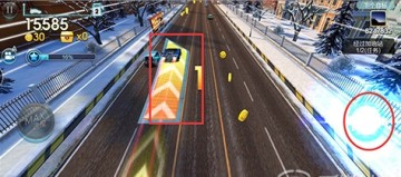 车在上跳板之前会有很强的一段冲刺加速带,即使撞了车也能瞬间提速至满。右边那个闪闪发光的东西就是跳跃的按钮!