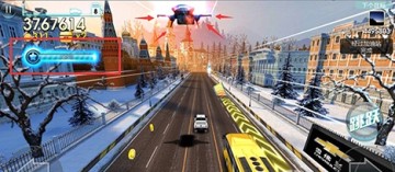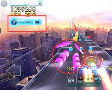首先介绍一下,这个就是跳板能量满后进入的奖励关卡,黄色和蓝色的水晶块呢是加积分的,黄色的比较大,自然加的比较多,分值是小蓝色水晶的5倍,而且随着玩家跑的加油站越来越多则进入这个奖励关卡后水晶分数也会大幅度增加,绝对不比超车的分数低哦。