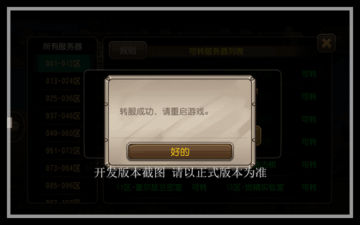 转服成功后,队长大大们重启游戏,即可在新的服务器进行游戏体验。
