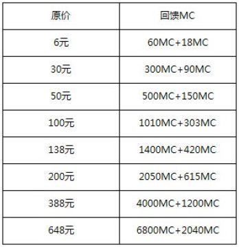 庆祝新版本更新, MC充值额外赠送30%MC!