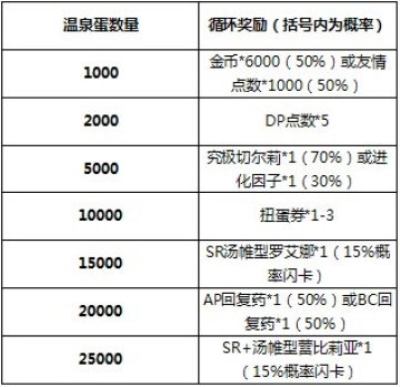 “温泉蛋”数量达到要求即可获得对应奖励,奖励将直接发放至游戏内礼盒,敬请留意。