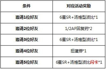 活动开始后,只要好友注册时填写您的邀请码成功注册并登陆游戏,即可得6星SR+汤帷型波比闪卡和其他道具!邀请的好友越多,奖励越多!