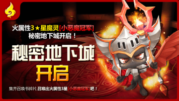 亲爱的Com2uS玩家们,大家好~!即日起直至18日,魔灵召唤游戏火属性3★小恶魔冠军秘密地下城开启。