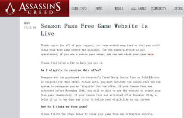 育碧之前承诺的《刺客信条大革命》bug补偿措施终于开启,之前购买了该作的玩家现在可以去官方兑换网址领取DLC季票下载码,而已购买了DLC季票的玩家则可以从《The Crew》,《看门狗Watch Dogs》,《刺客信条4黑旗》,《雷曼 传奇》,《Just Dance 2015》和《孤岛惊魂4》中任选一款,免费领取其下载码。