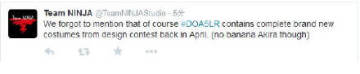 根据乳摇格斗游戏死或生系列开发商Team NINJA官方推特情报,《死或生5 Last Round》初始收录服装正式曝光,其包含之前《死或生5》以及《死或生5终极版》的免费配信和收费配信DLC服装,例如制服,体操服,泳装,还有《无双大蛇2终极版》和《YAIBA忍者龙剑传》的联动服装,民间设计服装等。