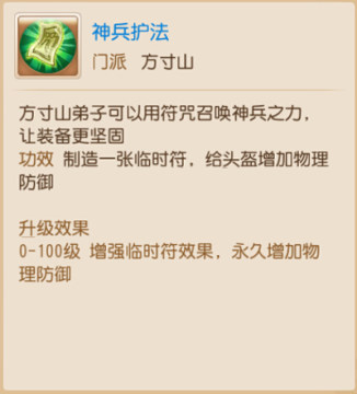 梦幻西游手游方寸山技能详解 来源: 飞翔小编 2015/1/27 20:40:49 浏览量:453 今天给大家带来的是梦幻西游手游方寸山技能详解,感兴趣的朋友一起来看看吧。自梦幻西游在端游上线以来方寸山就被誉为梦幻西游中的PK之王,方寸不杀你,你却因方寸而死,在梦幻西游手游中方寸山又怎么样呢?梦幻西游方寸山技能介绍神兵护法:黄庭经:失心符:离魂符:五雷咒:定身符:幻音古钟: