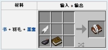 书与笔可在合成栏中用书、羽毛和墨囊以任意形式排列得到。