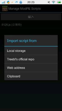 之后有四个选项。。。第一个是在文件夹导入你下载的js文件 第二个是输入js代码 比如8126是红石mod代码 三四选项巫师