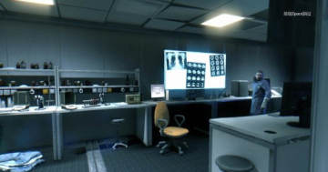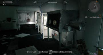 从房间的通风管道进入,走到尽头就是警卫室了,在房间的电脑屏幕上找到门卡,之后解锁前往实验室的门。