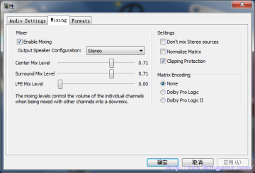 LAV默认没开混音,所以6声道的音频输出依然是6声道,而不是双声道。一般播放器/解码器都开混音的,毕竟主流用户都是双声道,而片子大多是5.1声道、7.1声道,所以必须混音,否则会有缺失声场的感觉。