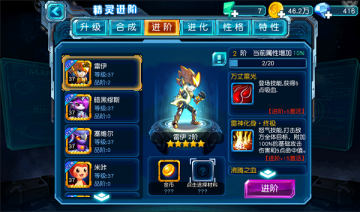 到了游戏中期,装备的提升难度逐渐增大,材料的获取也越发困难,这时,就需要增加精灵的品阶,提升精灵的各项属性值,用进化神石改变精灵的形态,使精灵的基础天赋获得加倍的效果。