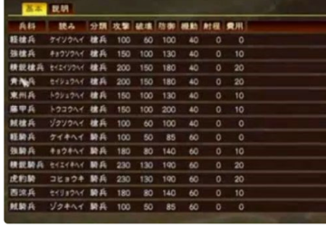 《三国志13》近期官方发布的情报比较多,有些细心的玩家发现了预告视频中的兵科内容,接下来为大家带来部分兵种数据一览,方便玩家们提前了解。