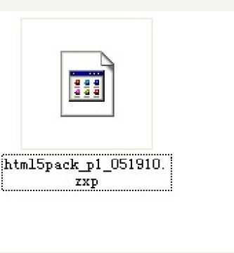 在本站搜索“Dreamweaver CS5 Html5”关键词,便可找到支持Html5的Adobe扩展功能文件,下载后格式为zxp。下载过程中注意防范挂马和病毒,下载后的文件见下图。
