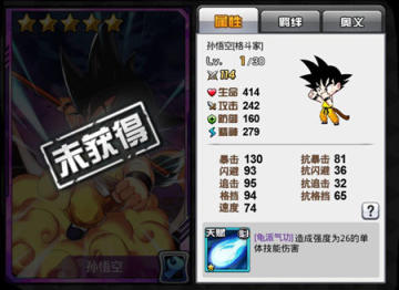 龟派气功(必杀技):造成强度为26的单体技能伤害。