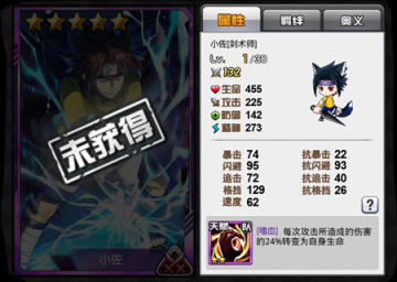 佐助是非常强大的剑术师,极高的伤害和无视防御的奥义让他的输出变的非常可怕,队长技能还是逆天的吸血,续航能力得到了极大的提升,佐助的羁绊也非常给力,如果入手建议培养起来。
