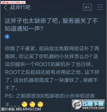 国产游戏机战斧F1疑似服务器关闭 卖国产情怀不自量力 来源: 飞翔小编 2015/1/26 19:02:10 浏览量:1462 根据百度贴吧的爆料,之前国产游戏机战斧F1半死不活,现在服务器关闭了,疑似已经跑路,玩家已经购买的游戏也无法继续游玩。