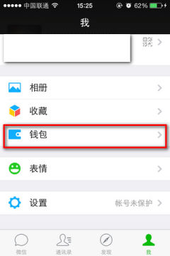 3、进入到钱包里面后可以看到下图红框的微信钱包,点击进入。
