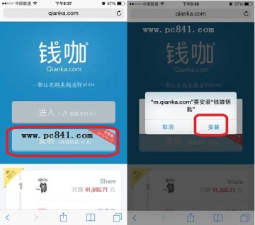 2.首进入网页按照提示安装“钱咖钥匙”app,如图: