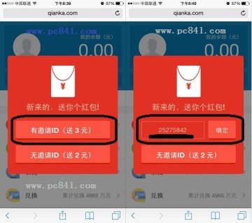 4.新用户会有红包收,会弹出如下页面,然后点击“有邀请ID送3元”,再输入“25275842”点击确定,就可以轻松获得3元红包了,如图:(赚钱在后面哦)