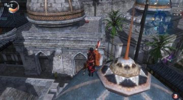 小地图上的位置,跳到房顶上可以看到对面的宝箱,这和宝箱1不是同一个,从连着2栋建筑的棕色布料形成的桥走过去,之后很多地点也需要从这种布上走。
