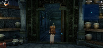 2、然后来到这扇门前,这里有四个小香炉围。很多玩家询问仙剑奇侠传6浪隐阁机关怎么过大多数就是说这个。其实也并不难,先Tab键切换到越祈,用她的“心念移物”将其中一个香炉投掷到门前,然后切换到明绣,按F键瞄准香炉,使用“灵术火弹”引爆,就能开启大门。