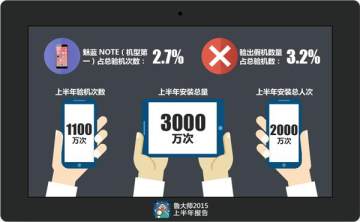 鲁大师在2015年上半年验机次数达到1100万次,半年超3000万次安装量,超过2000万人次安装使用了鲁大师移动版。在这半年里,验机次数最多的机型为魅蓝Note1,超过30万次。验出超过36万假机。